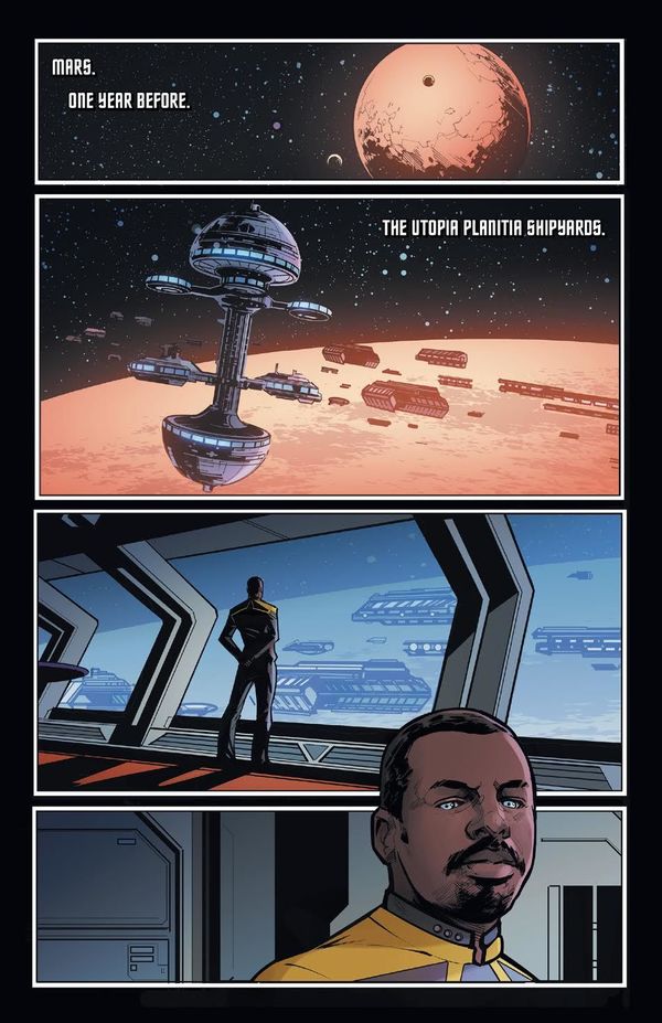En el primer número, el comandante Geordi La Forge se encuentra supervisando la creación de la flota de rescate en Utopia Planitia Shipyards, estos eventos toman lugar en el año 2385. Teniendo en cuenta que el almirante Picard anuncia el devastador ataque a Marte, podemos suponer que estos hechos transcurren el 5 de abril de 2385 o 2386.