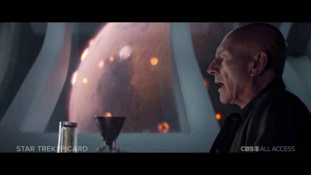 El planeta rojo está siendo atacado por "synths rebeldes" y se estima que unas 3000 personas perecieron en el ataque. Esta es la primera conexión que tenemos con el adelanto lanzado en diciembre donde Picard "es atormentado por su pasado" mientras "revive" el ataque a Marte desde el Ten Forward.