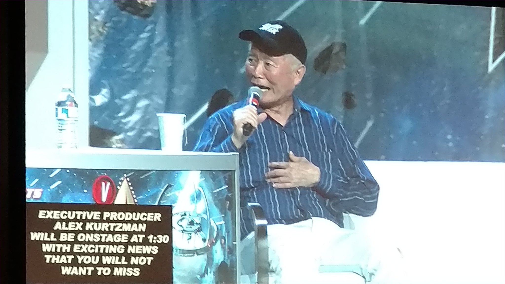 El carismático y adorable George Takei se presentó a las 15:00hs en el escenario principal del Hotel Rio All-Suites. Takei, con su amabilidad y candidez que lo caracteriza, brindó un panel en solitario (como suelen hacer los actores de la serie original) donde dio su punto de vista sobre el personaje de Sulu en la película Star Trek Beyond.