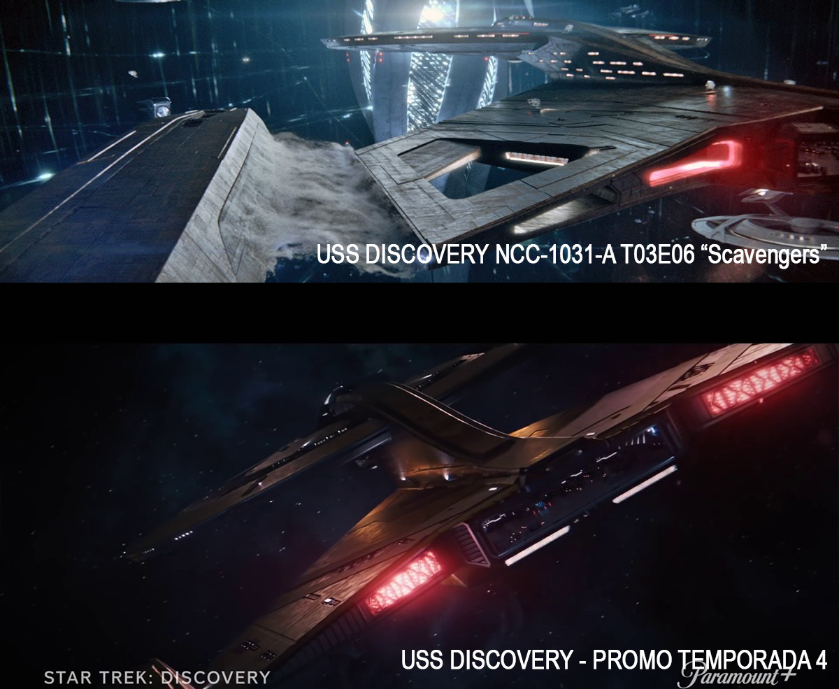 Una escena que llama particularmente la atención transcurre en el minuto 1:00 del tráiler, la Discovery entra en Warp pero aparentemente ya no están usando la NCC-1031-A. Recordemos que la Discovery fue sometida a una actualización en el episodio "Scavengers" de la tercera temporada.