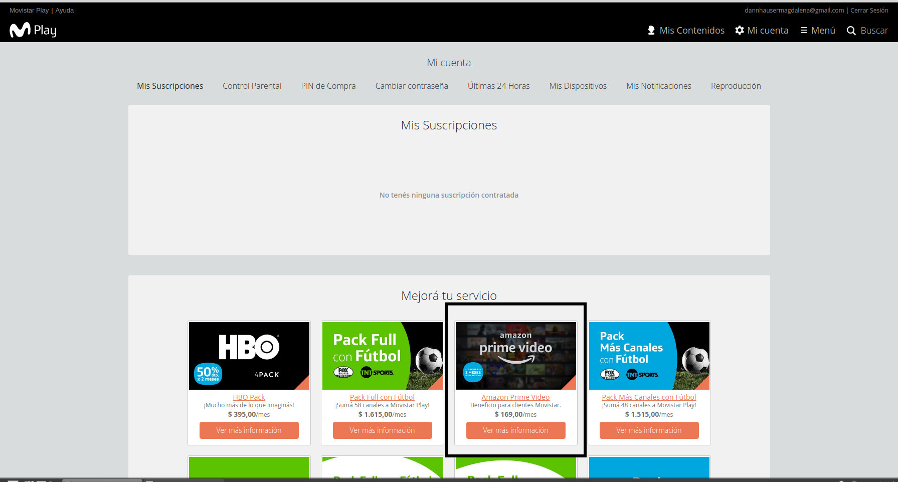 Una vez que hayas activado tu cuenta en Movistar Play, tendrás que suscribirte al servicio de Amazon Prime Video en la solapa "Mi Cuenta", "Mis Suscripciones".