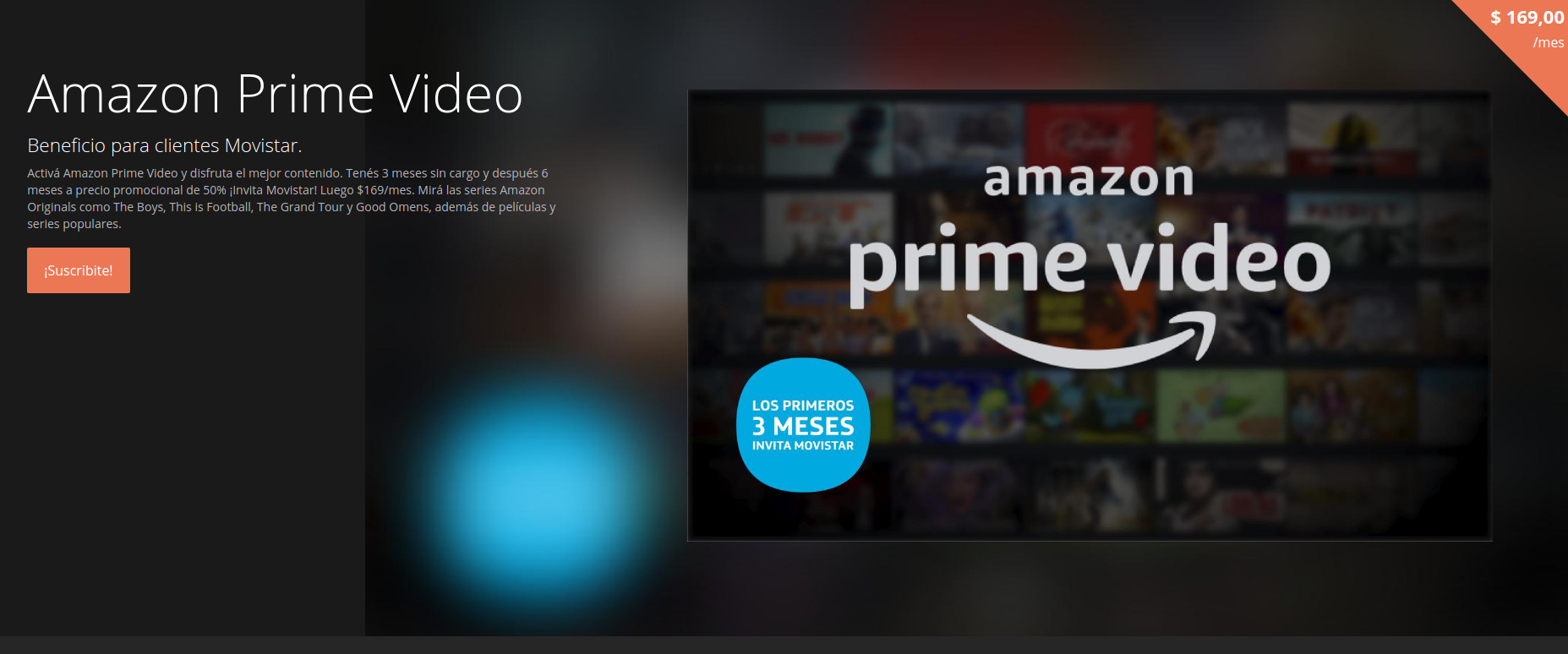 Si sos cliente de Movistar, ya sea por medio de una conexión de Internet por Fibra y/o telefonía celular, podés optar por una prueba gratuita durante tres meses en el servicio Amazon Prime Video. Luego de este periodo, el cual es casi exactamente lo que durará la primera temporada de la serie (24 de enero hasta el 27 de marzo), el costo será de $85 pesos durante seis meses. Finalizada esta promoción, Movistar mantendría el precio de $169, casi el 50% del tarifa normal contratando Amazon Prime Video personalmente.