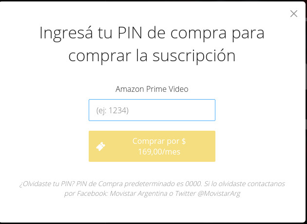 Ingresa el PIN de compra que tenés en Movistar Play, por defecto este PIN es 0000, lo podés cambiar en "Tu Cuenta".